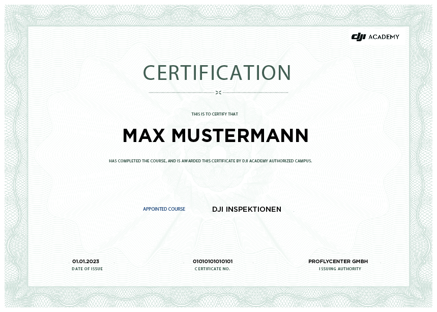 Exklusives „DJI Inspektions-Zertifikat“ (von DJI ausgestellt, weltweit anerkannt).