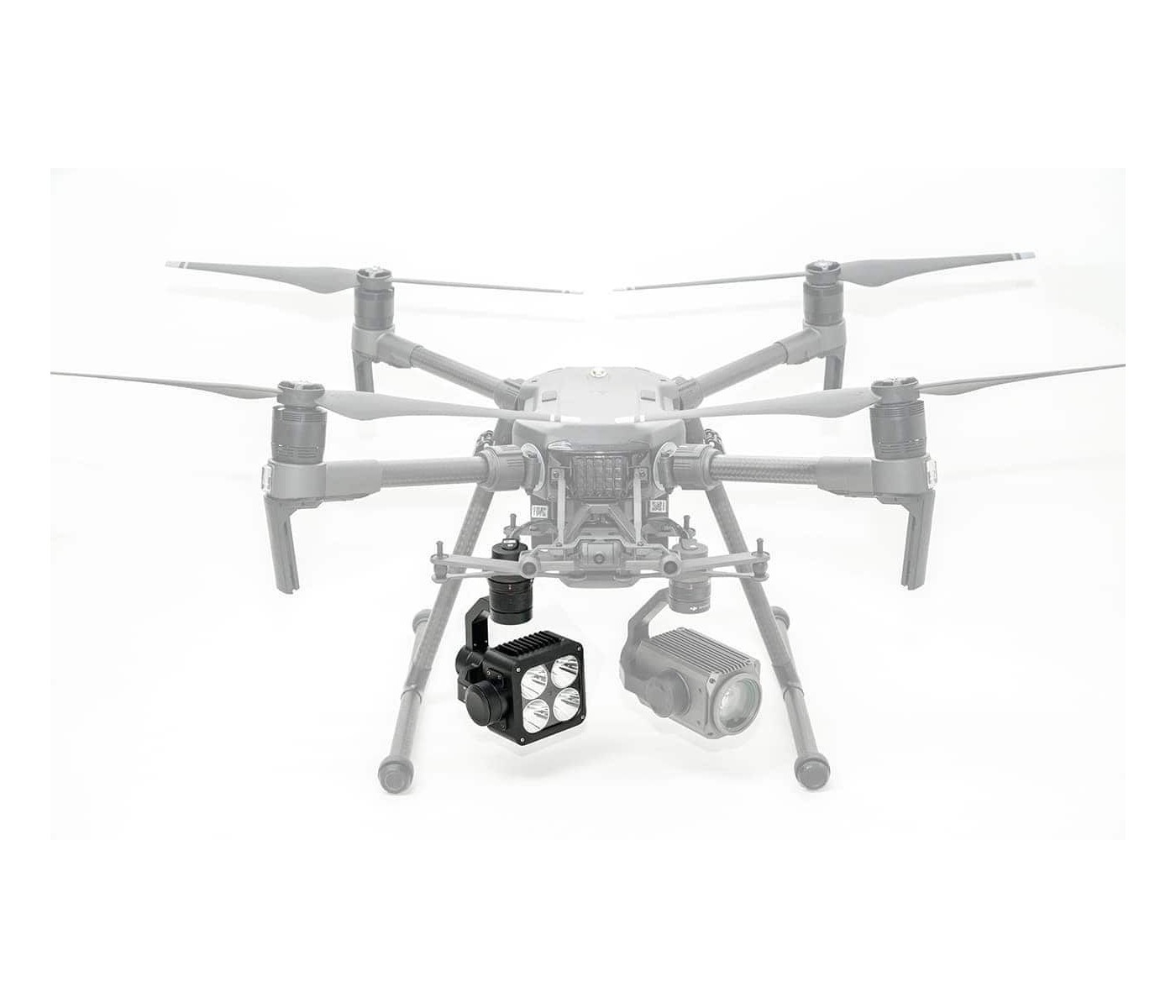 Er kann direkt an der Gimbal-Schnittstelle montiert werden und unterstützt die dualen abwärtsgerichteten Gimbals der DJI M200 Serie und M300.